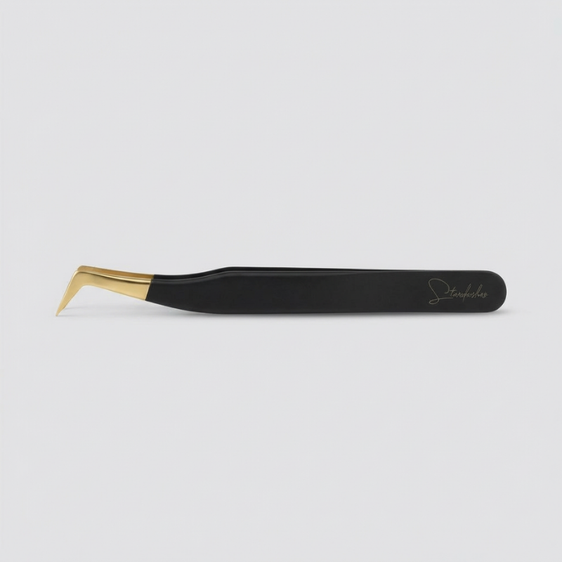 - Pince Droite : Cette pince est conçue pour saisir et coller les extensions de manière stable et précise. Elle permet une pose facile et rapide des extensions sur les cils naturels, assurant une répartition homogène des cils.
